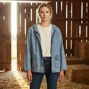 Vintage Blassport Denim Chore Barn Jacket Blue Hooded Retro Zip Medium