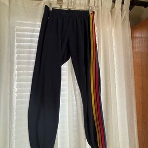Aviator Nation Navy Joggers with Rainbow Stripe