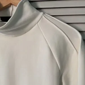 And pleats in all of the right places for a better fit. Mock neck is very flattering. Like New condition!
