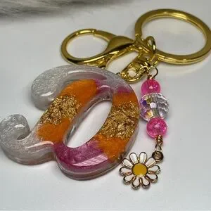 REDUCED Custom Orange Cream and Pink Letter “D” Keychain with Daisy Charm