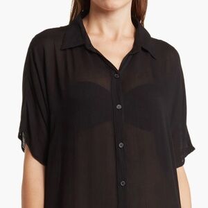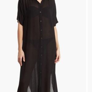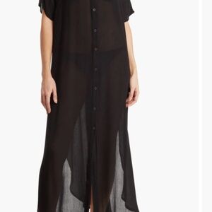 Elevate your wardrobe staples with this flowy shirt-style dress that can be dressed up or down for a versatile look. Button-up coverup, slit sides. No tags, never worn. Gauze texture.