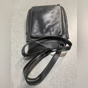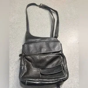 Vintage fossil, pebble leather, black sling bag/saddle bag, Crossbody