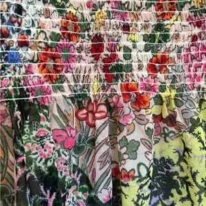 Small white paint mark on the back left. Price reflects this mark. Because of the gorgeous floral print the mark is unnoticeable when wearing—you gotta look really close to find it.