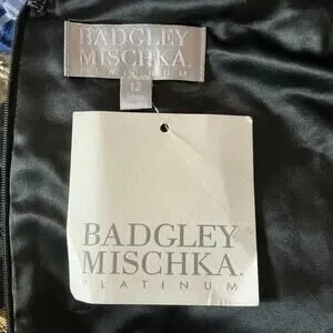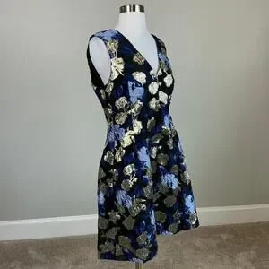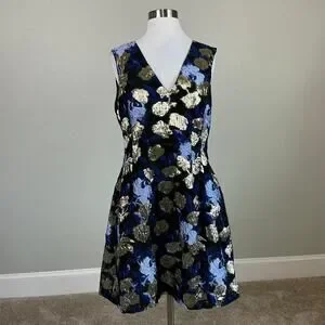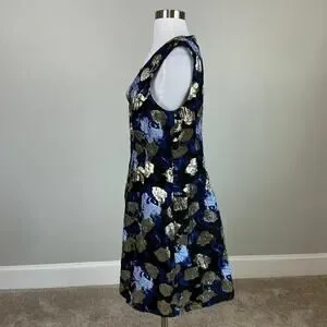 Badgley Mischka Metallic Floral Print A-Line Cocktail Dress Blue Multi Size 12