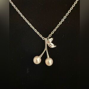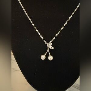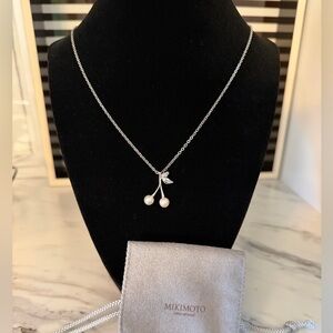 Mikimoto Akoya Pearl necklace featuring delicate pearls on a sleek silver chain.