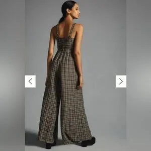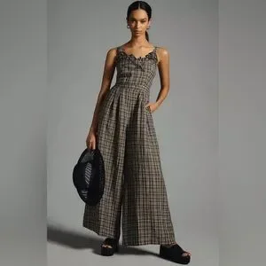 By Anthropologie Embroidered Plaid Jumpsuit