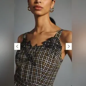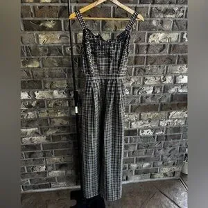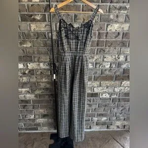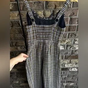 By Anthropologie Embroidered Plaid Jumpsuit Size 0