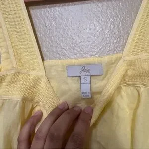 Chic light yellow camisole by Joie. Features wide straps and delicate embroidery. Ideal for warm days.