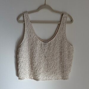 Chic cream tank top with a textured design. Ideal for layering or wearing alone. Adds a touch of elegance to any outfit. Great layering piece, slight crop fit - stretch fabric. New with tags
