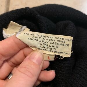 This is a beautiful, high-quality piece made from 100% 2 Ply Cashmere, offering incredible softness and warmth. The quality tag indicates it was Made in British Hong Kong, suggesting it's a true vintage item (likely dating from the era before the 1997 handover).