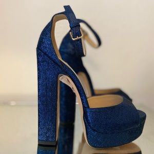 New Jimmy Choo Blue metallic Liberty 150 Sandals 37 $995