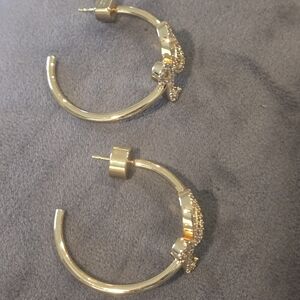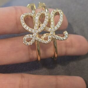 This stunning Loewe hoop earings features a beautiful gold band adorned with diamond (cz) accents. Perfect for adding a touch of elegance to any outfit. can't confirm authenticity as it was gift but please pay close attention to pics and stamps, priced accordingly
