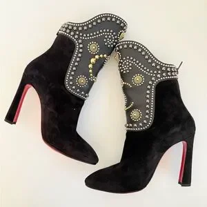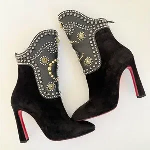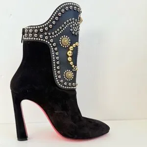 Christian Louboutin Alix Bootic 100 mid calf bootie in Black Suede leather EU37