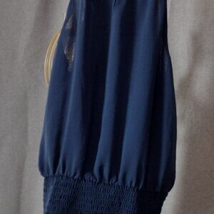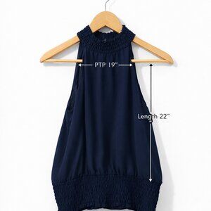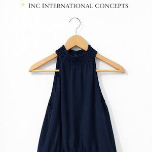 INC International Concepts Blue Halter Top Small Smocked Waist Flowy Blouse Chic