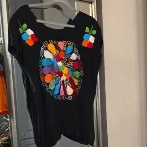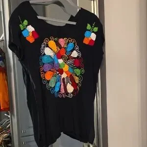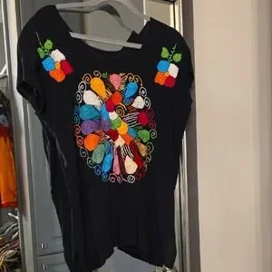 Vibrant and stylish, this blouse features a colorful embroidered design. Perfect for adding a pop of color to your wardrobe.