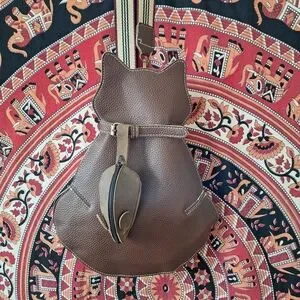 Versatile cat shaped mid-size faux-leather purse with genuine leather mouse shaped coin purse
