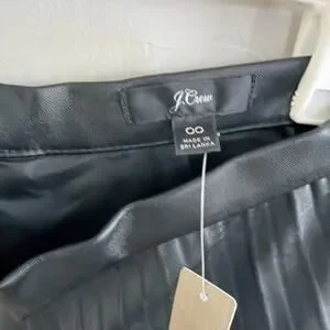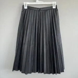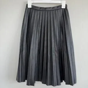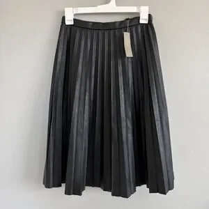 NWT J.Crew Women Black Faux Vegan Leather Pleated Knee Length Skirt Size 00