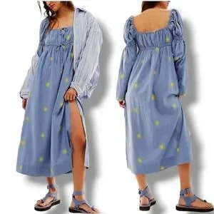 NWOT Free People Emory Embroidered Midi Dress $168 XS