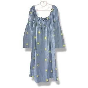 So billowy and beautiful, this feminine midi is featured in a soft cotton-linen blend and shapeless silhouette with embroidered detail throughout and a chic square neckline.