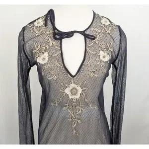 Condition: Pre-owned condition. There is a small split on each of the sleeve cuffs. There are some minor pulls on the florl embroidery on the front left.