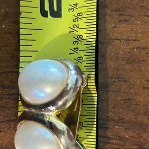 Light wear and minor scuffs visible on the faux pearls. Measurements: Approx. 1 inch length.