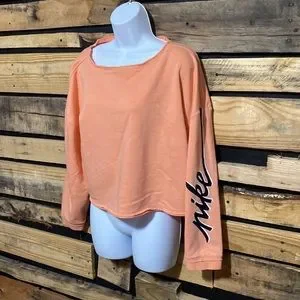 Nike Femme Cropped Training Crew Sweatshirt Orange Crimson Bliss Large