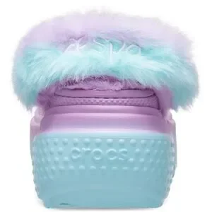 The AESPA x CROCS Stomp Lined Clog features a platform, round toe, and slide. It is embellished with logo and fur trim.