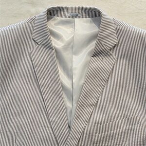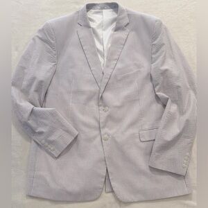 Saddlebred Blue & White Seersucker Blazer | 48L | 100% Cotton