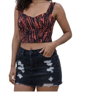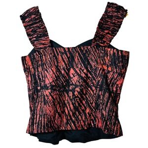 Splatter Print Cropped Top Womens S Red Black Ruched Strap Sweetheart Tank