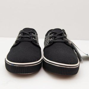 Toms Carlo Sneakers Lace Up Canvas Shoes Casual Retro Black White Size 8.5 New