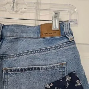 American Eagle 2 Patchwork Denim Shorts Light Wash Boho High Waisted Distressed