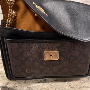 Coach Eloise Black and Brown Shoulder Bag with Gold Chain