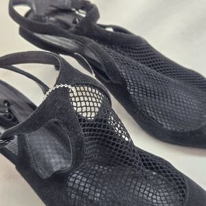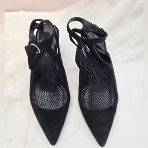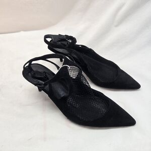 ALEXANDER WANG Women's Size 39 Black Cecile Fishnet Leather Kitten Heel Pumps. There is some wear
