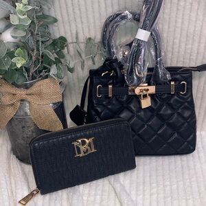 Bagley Mischka Elegant Black Quilted Handbag and Wallet Set
