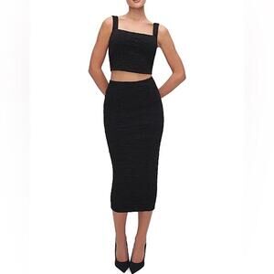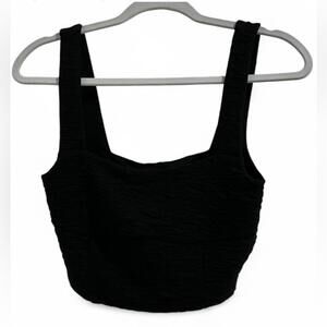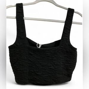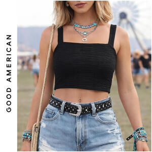 NWT GOOD AMERICAN SZ M Black Textured Square Neck Crop Top Goth Festival $129