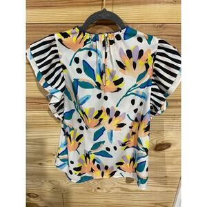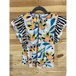 Crosby by Mollie Burch Flutter Cap Sleeve Zoe Top Island Lillies Mixed Print, XS