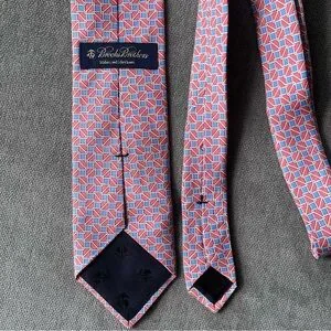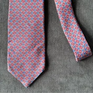 Brooks Brothers Silk Tie Salmon Blue Geometric Chain Link Print L/XL
