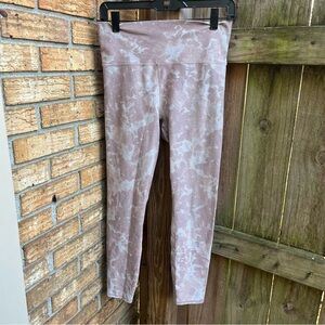 Stylish pink tie-dye leggings. Comfortable and stretchy. Perfect for workouts or casual wear.