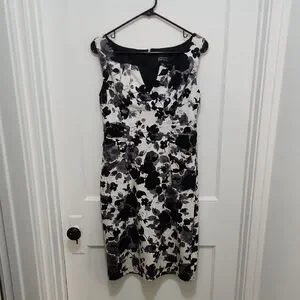 Adrianna Papell Black White Floral Dress Size 8
