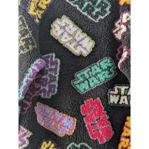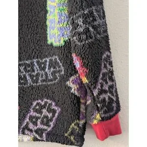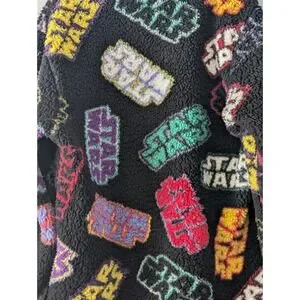 The Star Wars Sherpa Pullover Sweatshirt is a unisex, relaxed-fit sweatshirt featuring a graphic print of the Star Wars logo in multiple colors, with a black body and crew neckline. This pullover style sweatshirt is perfect for fans of the popular sci-fi franchise looking to add a touch of cosplay to their activewear collection. Made by Disney Parks, this sweatshirt comes in size L and is designed for fans who want to stay comfortable and stylish while showcasing their love for the iconic characters and themes of Star Wars.