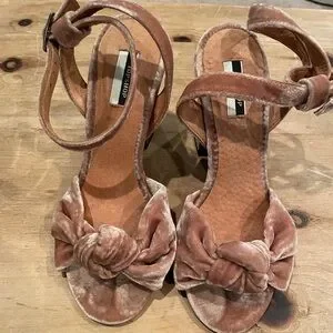NWOT Topshop Velvet Champagne Caramel Metallic strap Heels Coachella Festival 6