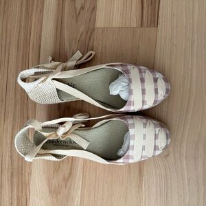Childrenchic Canvas Stylish Beige Checkered Espadrille Wedges Size 40 (US 8)