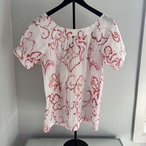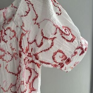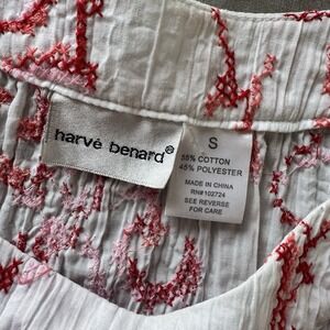 Harve Benard White Red Embroidered Peasant Blouse Boho Cottagecore Top S