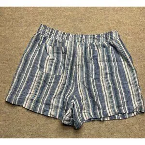 Briggs Linen Blend Blue Striped Pull On High Waist Shorts Relaxed XXL NWT Coasta