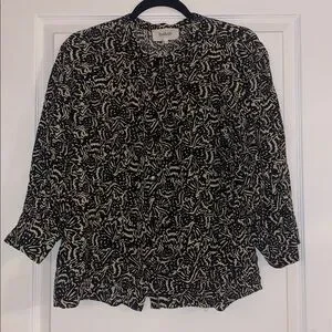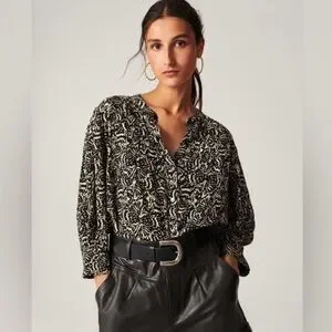 ba&sh Lio Pintucked Shirt Abstract Blouse 100% viscose half sleeves Size 2