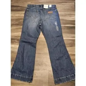 Wrangler Womens 32x32 Denim The Green Jean Trouser High Rise Flare Wide Leg Blue
