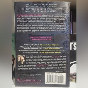 When sixteen-year-old Zoey Redbird is "Marked" by a vampyre tracker and begins to undergo the "Change" into an actual vampyre, she has to leave her family and move into the House of Night, a boarding school in Tulsa, Oklahoma, for other fledgling vampyres like her. It's tough to begin a new life away from her parents and friends, and on top of that, Zoey finds she is no average fledgling. She has been singled out by the vampyre Goddess, Nyx. Although Zoey has awesome new powers, it's hard to fit in when everyone knows she's special. As she tries to make new friends and maybe find a hot boyfriend (or two), she comes up against all kinds of evil, from the perfect-looking, super-popular girl with not-so-faultless plans, to the mysterious deaths happening at the House of Night and all over Tulsa. Things at the House of Night are not always what they seem. Can Zoey find the courage deep within herself to discover the truth and embrace her destiny?
