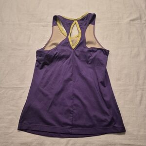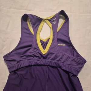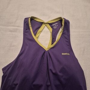 Reebok women's Medium purple with lime trim tank top, shelf bra VGUC
