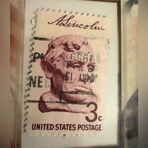 Celebrate history with this Abraham Lincoln stamp by Topps. Features a distinguished brown and cream design. Ideal for collectors.
