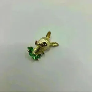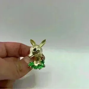 1.5 inches in length Reindeer’s eye is a green rhinestone. Made of enamel.